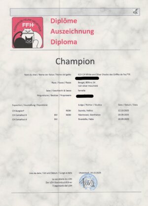 Notre première silver vient du bel élevage des Griffes de Feu, de Nathalie Chiesa en France.